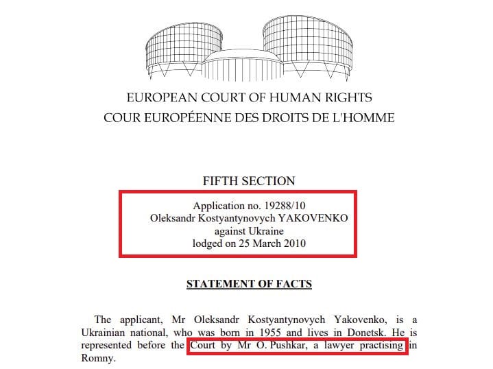 Интересы Яковенка представлял практикующий юрист г-н О. Пушкарь. Ссылка на документ ЕСПЧ.